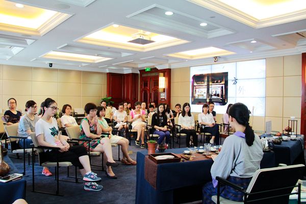 茶藝是一種以茶為媒的生活禮儀,也被認為是修身養(yǎng)性的一種方式,它通過沏茶、賞茶、聞茶、飲茶,增進友誼、美心修德。本次培訓設茶藝展示和理論知識講解兩個環(huán)節(jié)。茶藝師首先示范講解了茶具的擺放位置、器皿的名字及作用、向客人敬茶和奉茶的順序及動作等較為實用的知識和技巧,并現(xiàn)場沖泡演示,讓學員更為直觀地了解整個過程。隨后,她介紹了茶葉的基本分類、品質(zhì)特性、加工工藝等知識,讓學員在理論與實踐兩方面了解茶學與茶文化基礎,掌握基礎沖泡技藝、茶葉鑒別等技能。